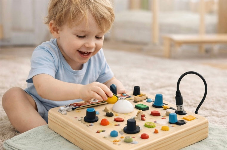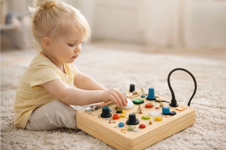 Screen-free play that actually keeps toddlers engaged.The Montessori Busy Board is designed to help toddlers develop fine motor skills, independence, and focus — all through calm, hands-on play.Perfect for home, travel, and everyday learning without overstimulation.